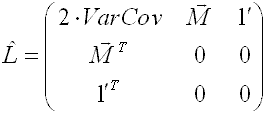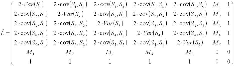 r ). This solution leads to the matrix notation of a system of equations. The example below presents a matrix of Lagrange multipliers for 5 chosen assets:
